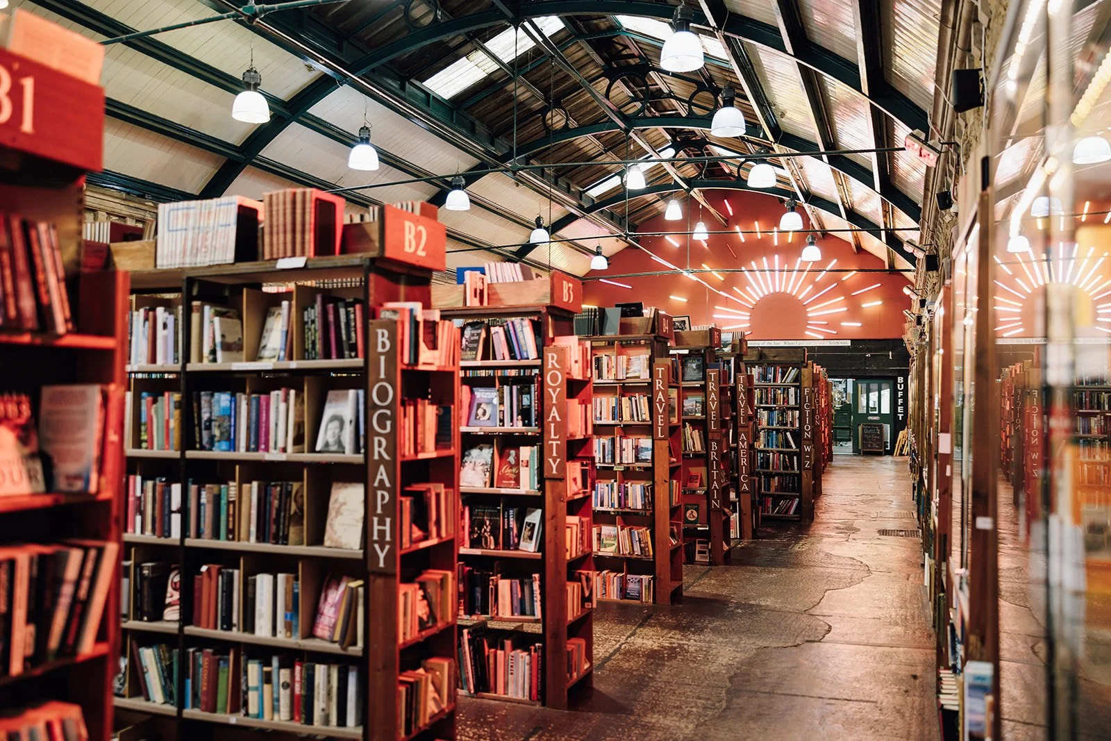 The train station which houses the bookshop was designed by William Bell in 1887 and was built to a remarkable size and grandeur for what was a prosperous, yet small, provincial market town. This anomaly can be explained by the presence of the Dukes of Northumberland inhabiting the nearby Alnwick Castle. In the 19th century an impressive train station was deemed necessary in order to satisfy visiting royalty and VIP guests!