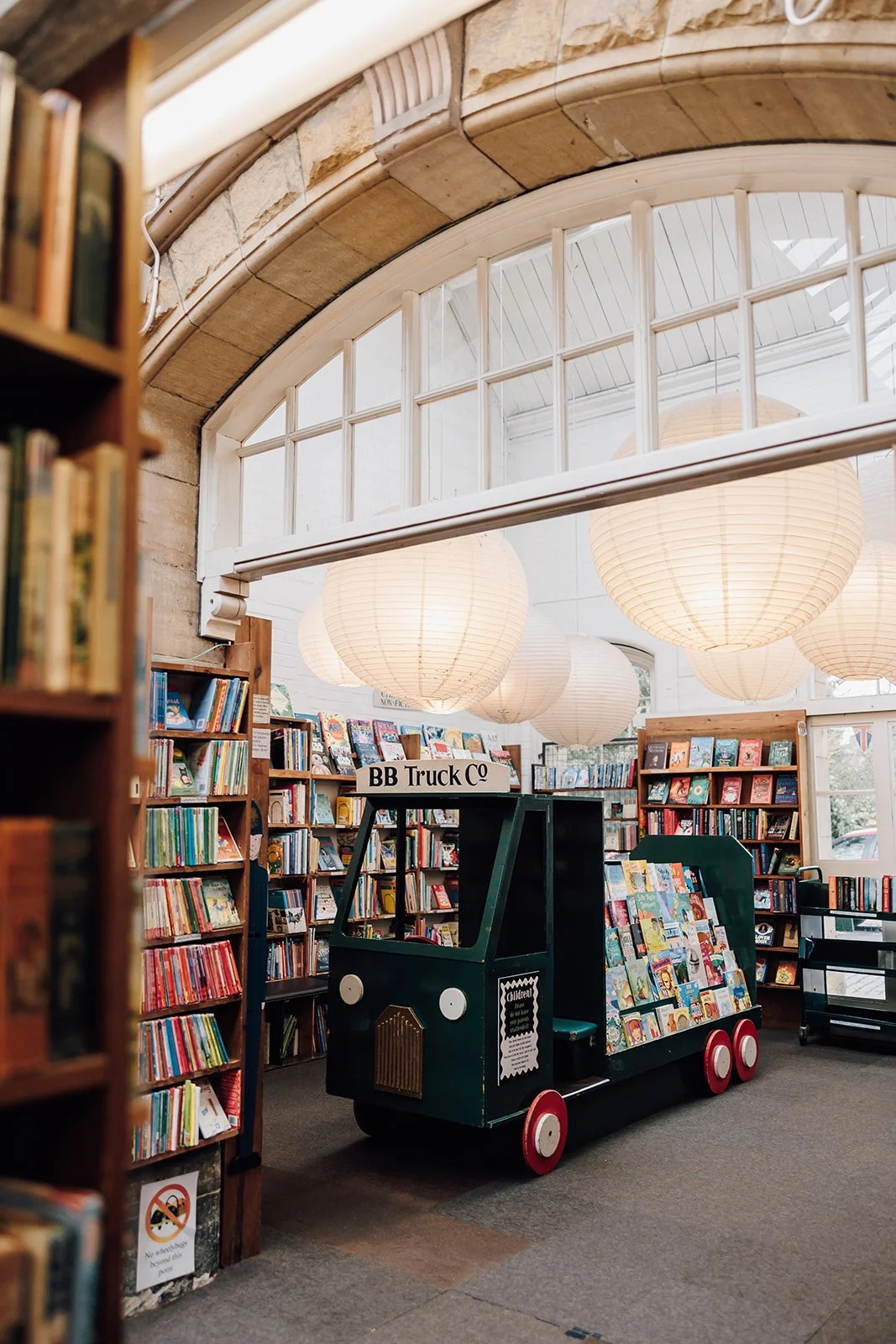 Trains continued to operate out of the station until 1968, when services ceased as part of the Beeching rationalisation of Britain’s railways which saw a major series of route closures and service cuts. Today, the bookshop occupies seven rooms of the former Victorian station, each retaining its original character while serving new purposes. The main entrance, once the station’s parcel room, still features the barred window where passengers used to purchase tickets. Beyond that window lies the station’s original entrance, now home to Barter Books’ enchanting children’s room.
