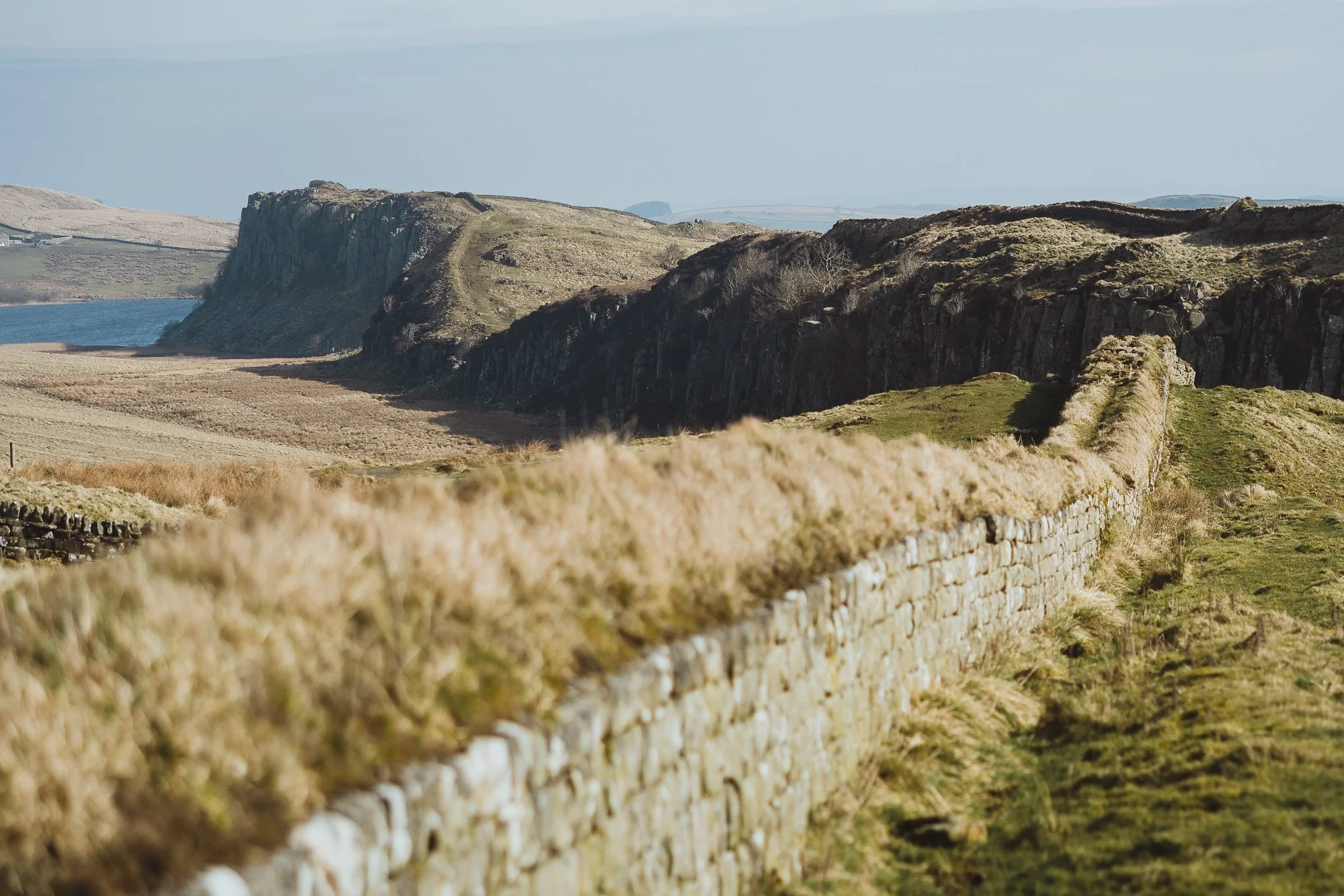 2. Follow the footpath until you meet Hadrian’s Wall. Turn left through the gate.