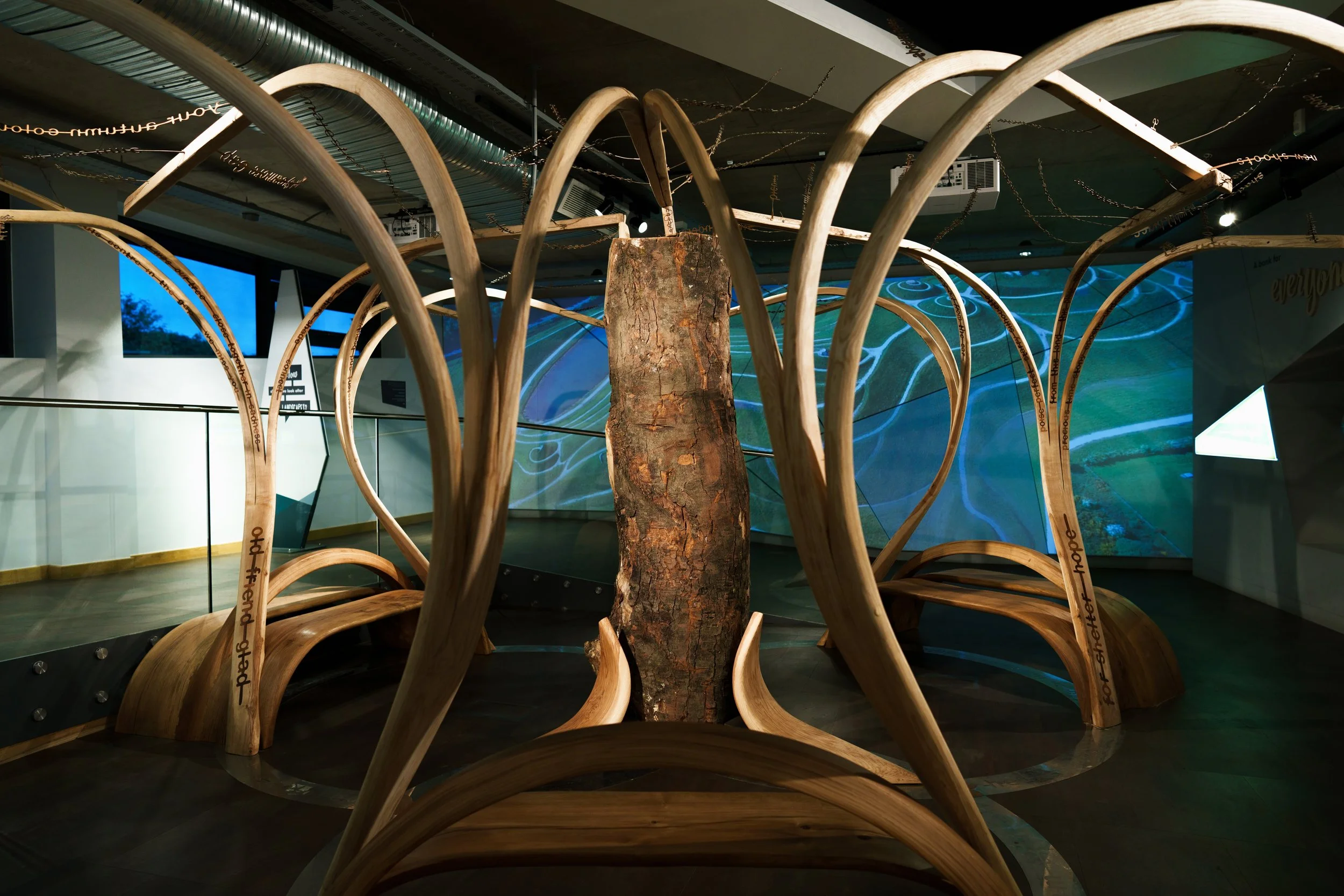 Two years on from the felling, the perpetrators have been brought to justice, marking the end of one of the county’s most painful chapters. Now, the Northumberland National Park Authority is looking to the future with hope, while paying tribute to the legacy of the tree and what it meant to so many. The largest piece of the salvaged Sycamore Gap tree trunk is now the focal point of a new permanent exhibition titled Sycamore Gap: Coming Home. The installation is housed at The Sill: National Landscape Discovery Centre, just a couple of miles from where the tree once stood. Upon receiving the commission, local sculptor Charlie Whinney spent months speaking with hundreds of people about what the tree meant to them, allowing their voices and memories to shape his vision. It quickly became clear that this memorial needed to be more than something to simply look at; it had to be something people could feel and touch. The concept evolved significantly, as Charlie set out to create a space where people could connect with the tree in a deeply tangible way, even embrace it, if they wish. The result is a beautifully powerful installation: the trunk stands upright, as it did in life, surrounded by three oak benches arranged to evoke the feeling of a quiet gathering place. Curved pieces of steam-bent wood form a canopy over the space, each inscribed with words, phrases and tributes submitted by members of the public – simple yet heartfelt expressions like Old friend and From this land.